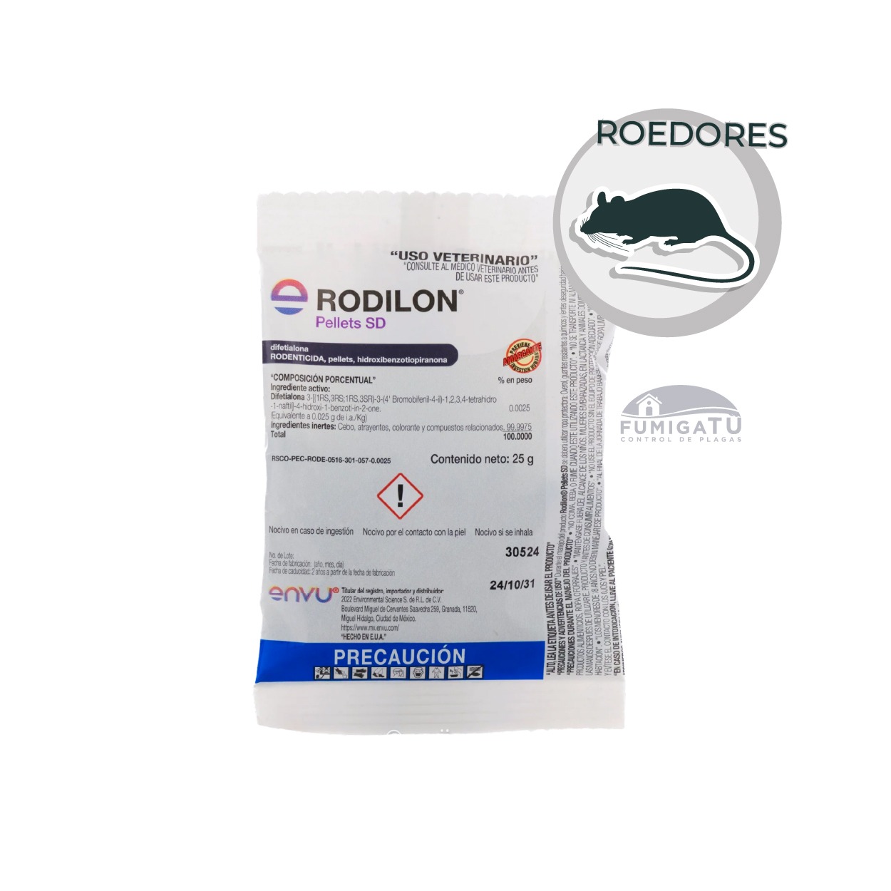 – Tipo de Rodenticida: Cebo en Pellets.